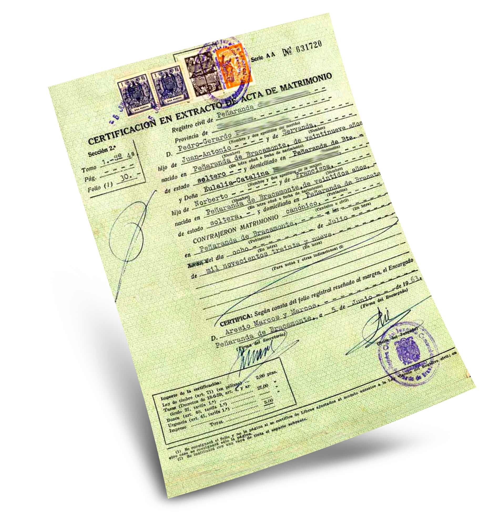• Certificados de Matrimonio