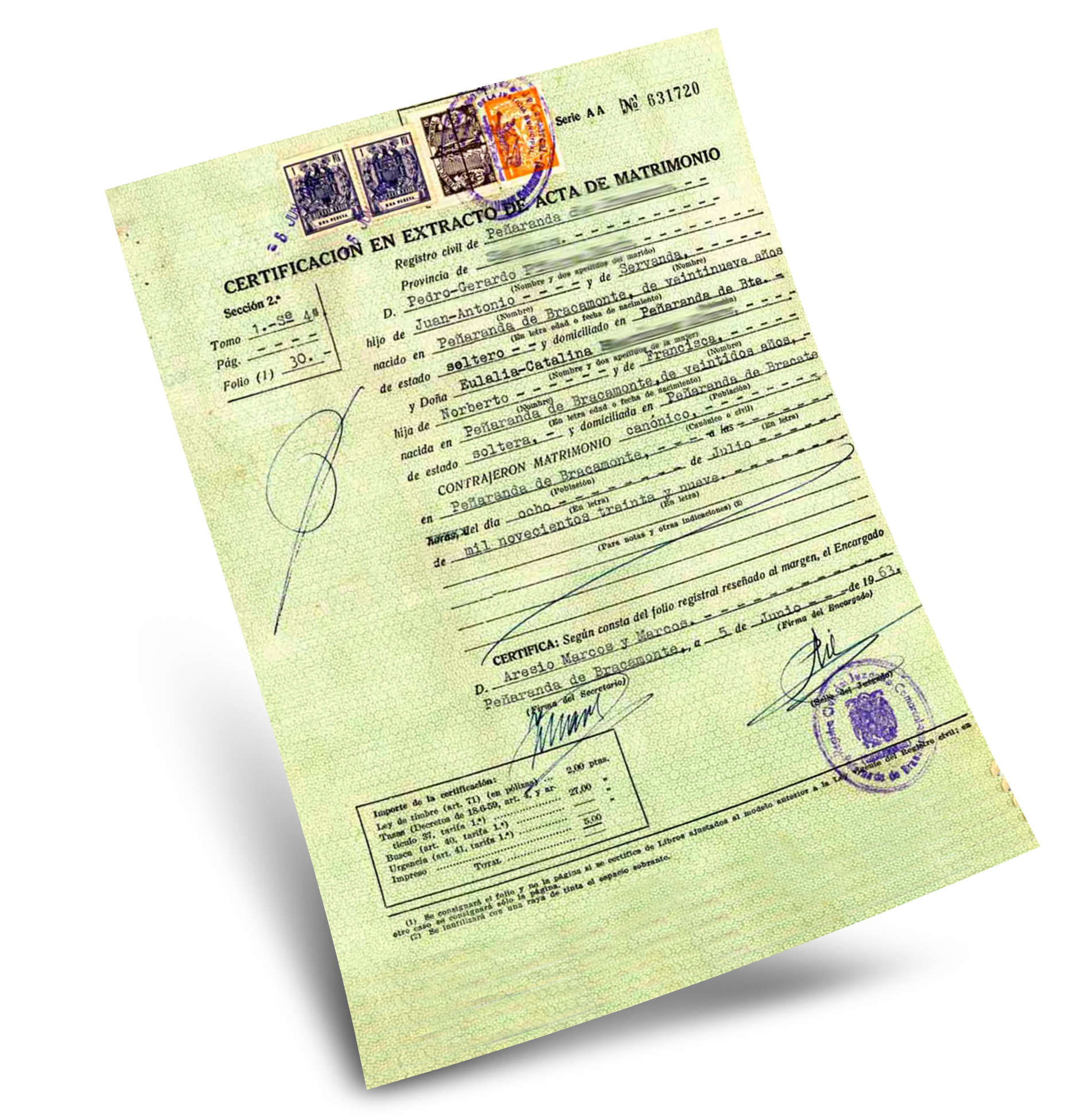 - Si estás en España y eres extranjero deberás realizar una traducción jurada de tu certificado de matrimonio del idioma que te corresponda (inglés, francés, alemán, italiano, etc.) al español, ya que el país exige que cualquier documento legal debe estar redactado en castellano.